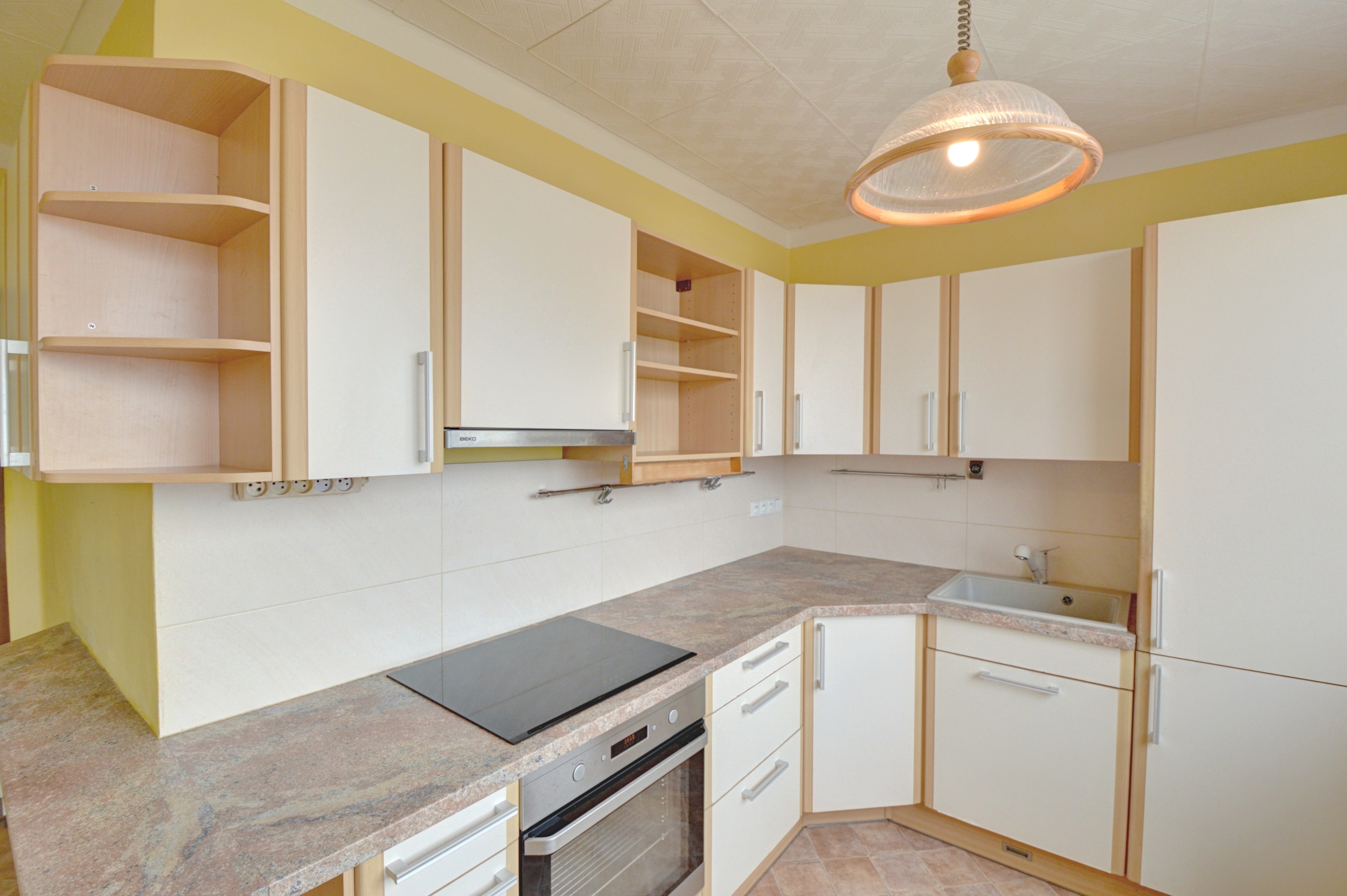 Bytové jádro je zděné a je vybaveno sprchovým koutem, což je oproti původním panelovým jádrům praktické a trvanlivé řešení. Kuchyň je ve velmi pěkném a udržovaném stavu a umožňuje okamžité používání bez nutnosti větších úprav.