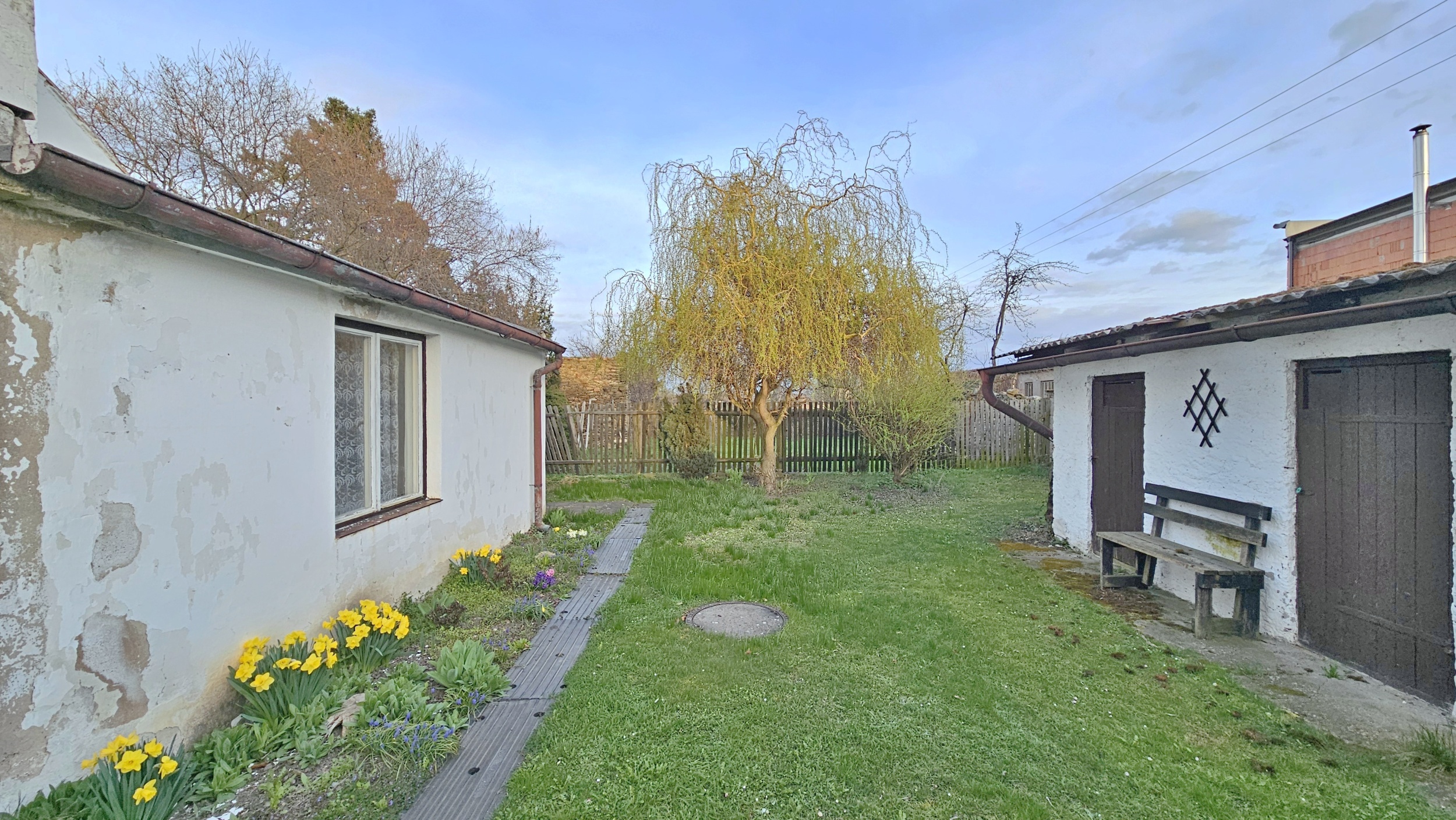 Součástí prodeje je také menší pozemek se zahradním domkem na nářadí, který lze jednoduše upravit na příjemné místo pro posezení či relaxaci.