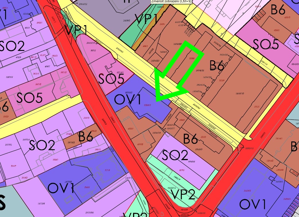 Dle územního plánu je nemovitost vedena jako plocha občanského vybavení, určená pro obchod, služby, veřejné stravování, kulturní či sociální zařízení.