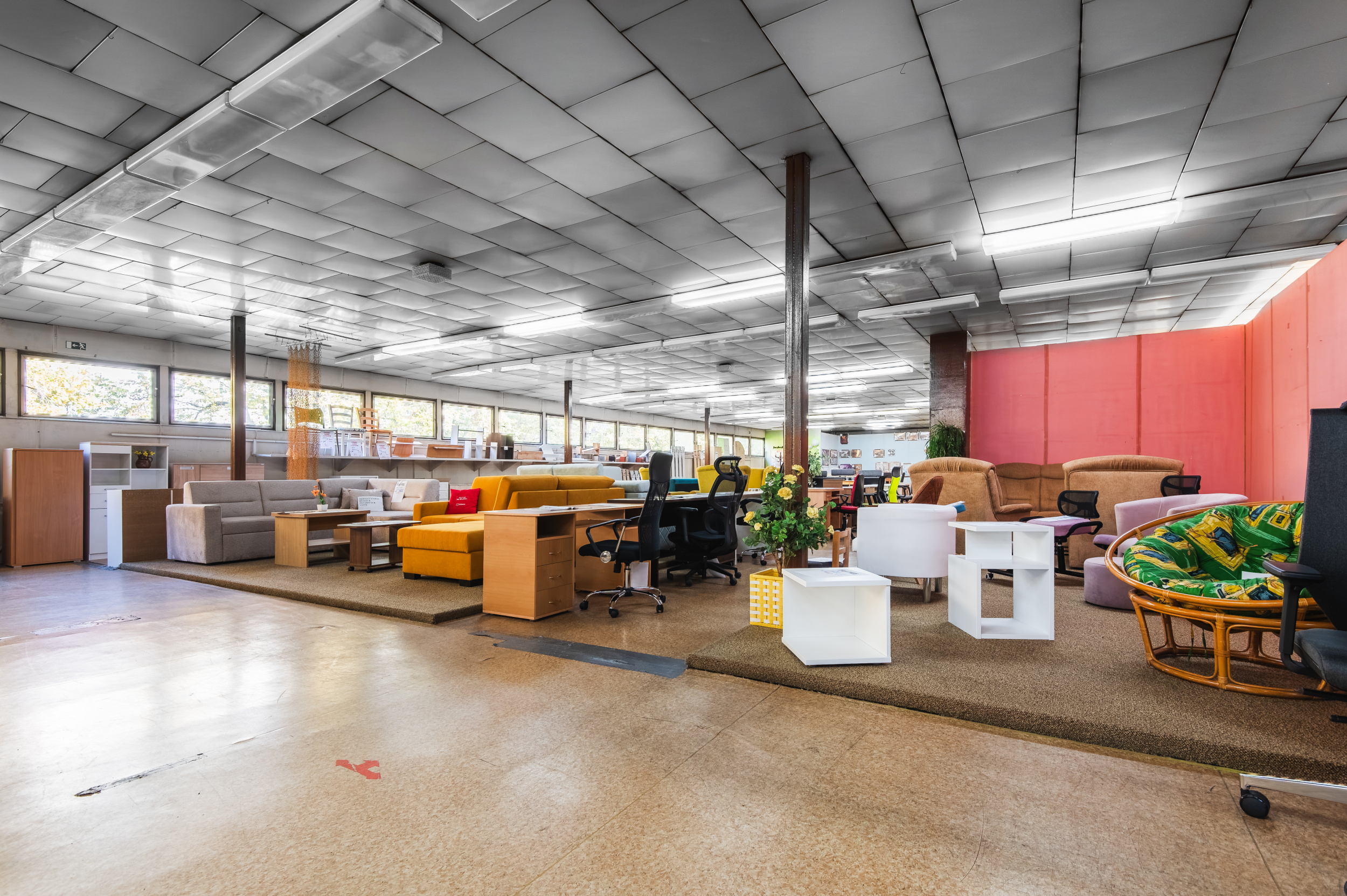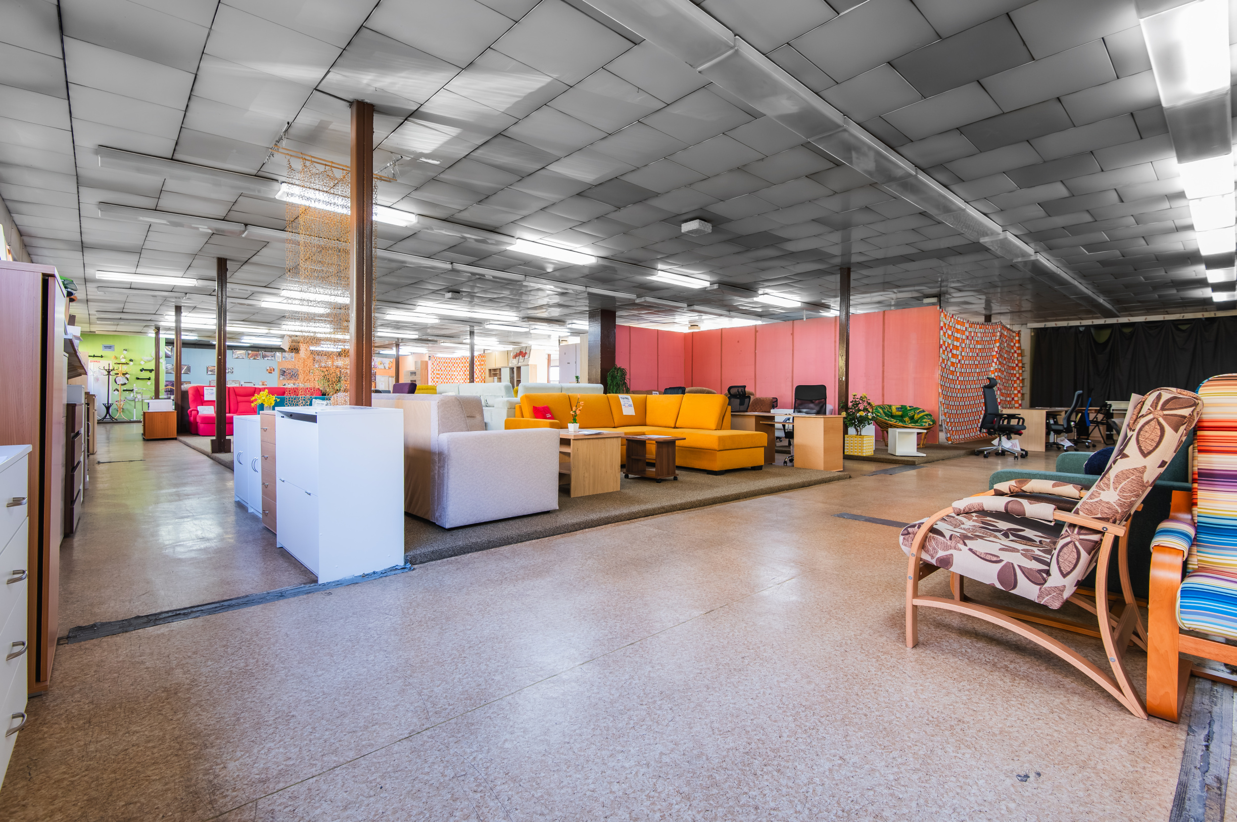V přízemí se nachází obchodní prostor (aktuálně prodejna nábytku), skladové zázemí a technická místnost. V prvním patře jsou další obchodní prostory, kanceláře a sociální zařízení.